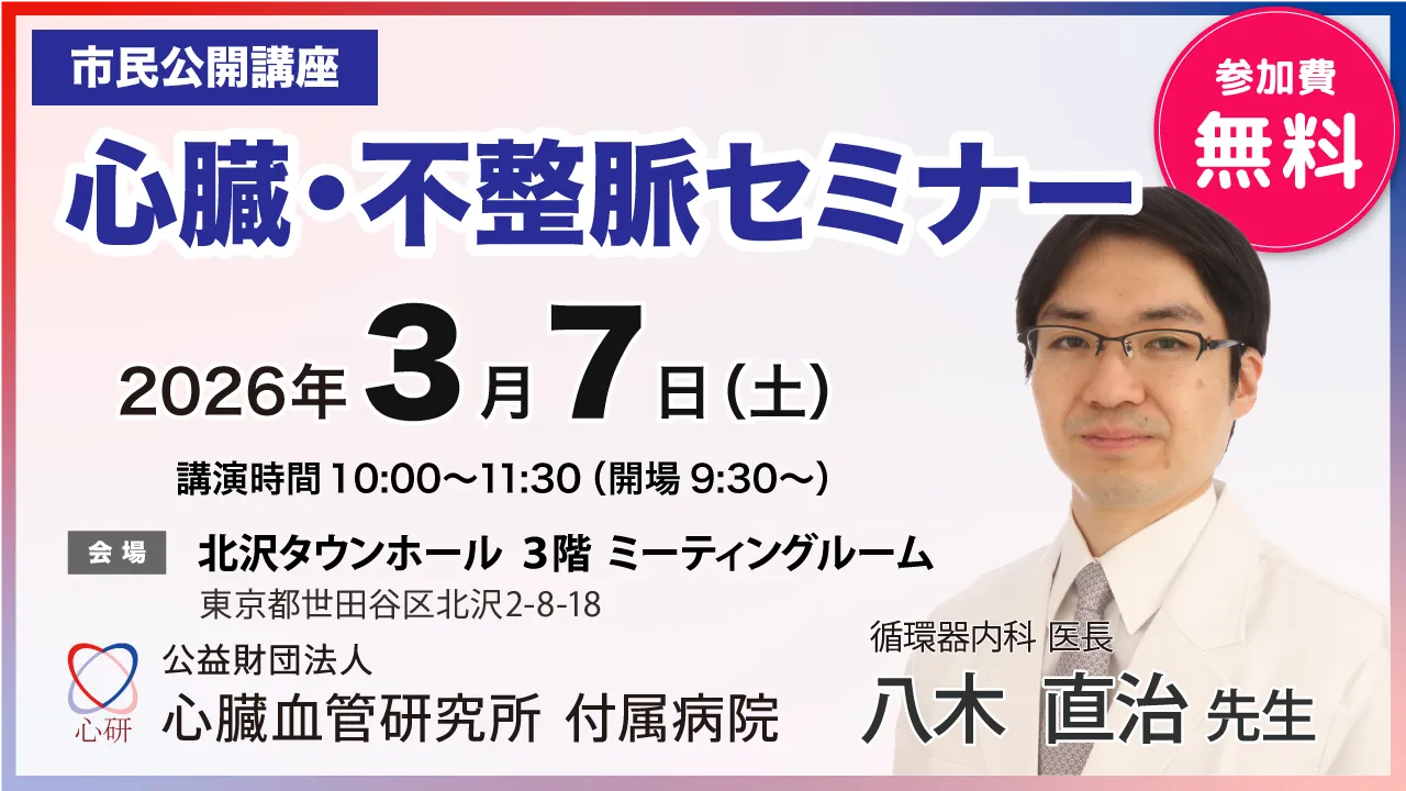 | 講師 | 心臓血管研究所付属病院 循環器内科医長 八木直治先生 |
